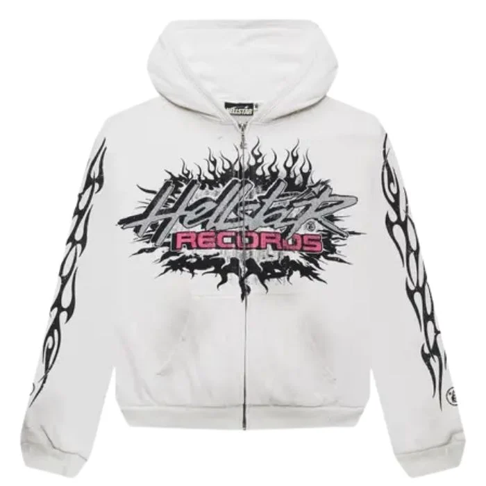 White Hellstar Records Glitter Zip-Up Hoodie